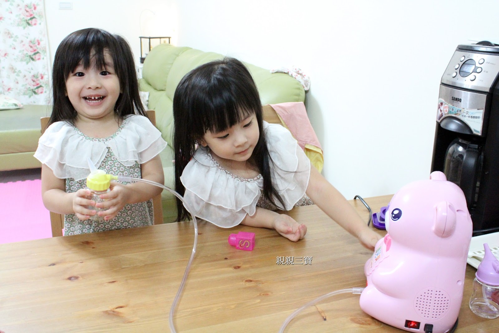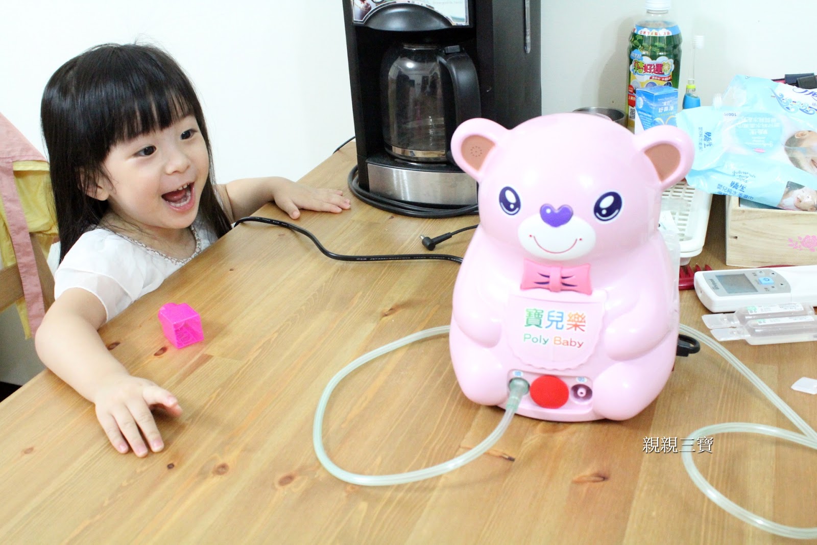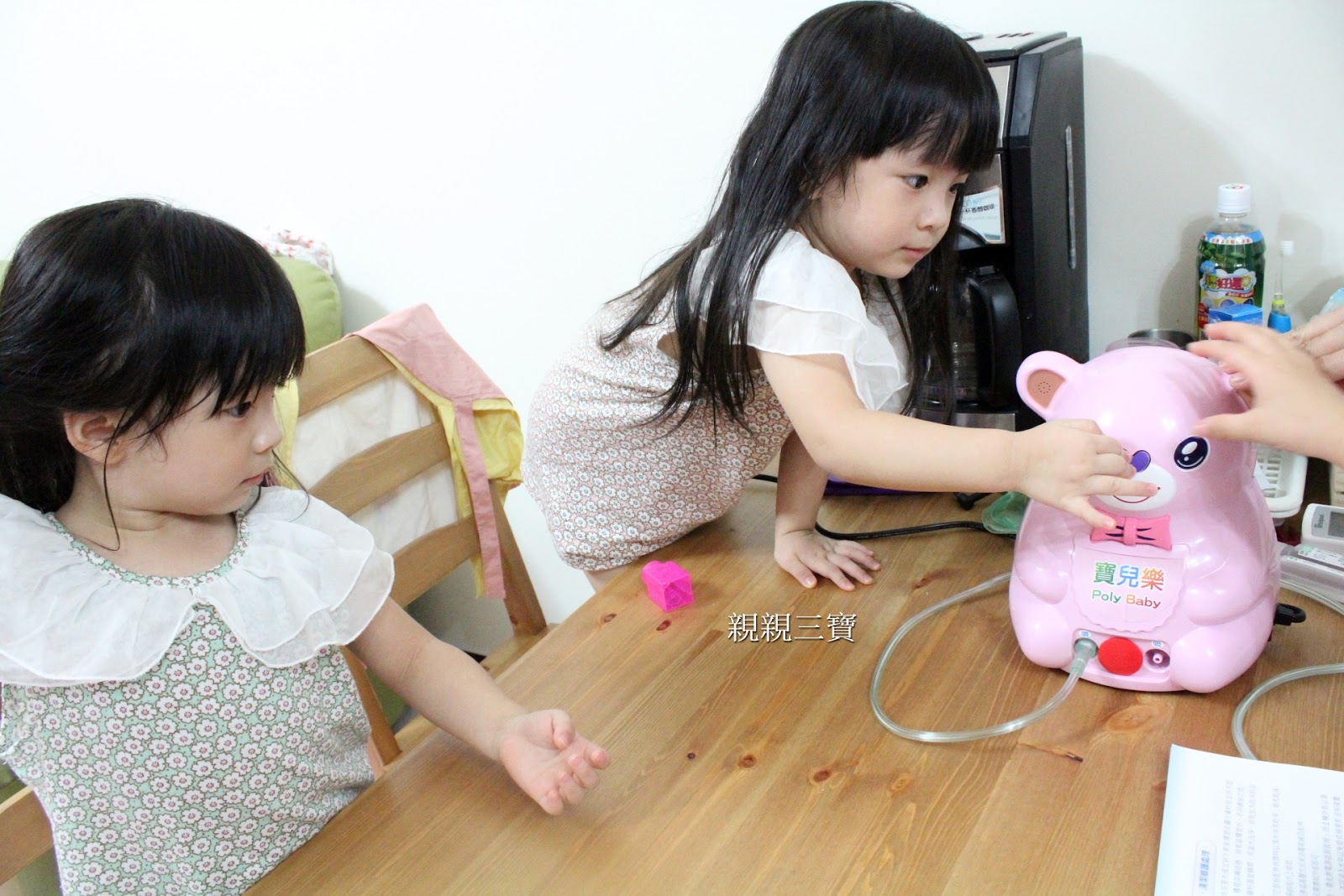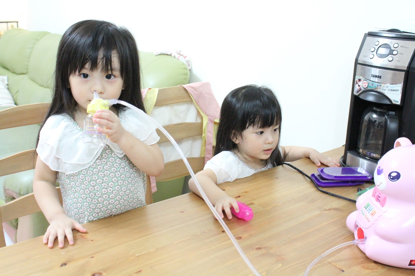 不過一直開車帶去診所吸氣也不是辦法,醫生知道家裡三寶氣管都不好,建議我們可以考慮選購一台噴霧呼吸器,有時如果深夜不舒服也可以立即使用!至於藥劑當然就是找醫生開立!