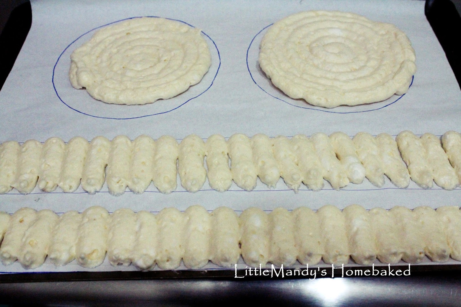 成品為一個六吋慕斯圈,因為要做手指餅乾,所以事先先在烘焙紙上做記號比較好操作